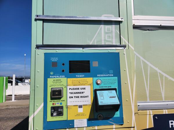 There is a metal rail at the top of the ticket machine where the nameplate is mounted.