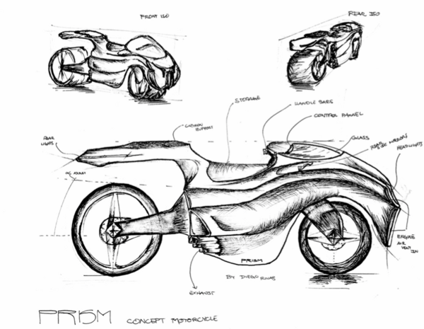 Description: An aerodynamic concept bike, inspired by a mix of future trends and aerodynamic design. The bike is aimed to be extremely lightweight, with most of its components of carbon fiber, and has an extremely powerful engine air fueled by two large side intakes.