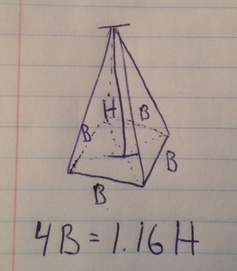I want a small pyramid, 4-6 inches tall, whatever is most convenient for you. The sum of the four base sides should equal the height of the pyramid times 1.16 |