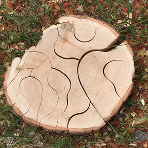 Tree cookie puzzle like the one shown made out of a tree slice that's about 2-3inches thick and about 12-15 inches in diameter. |
